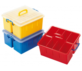 With twin tray, 6 slide-in dividers, handle and hard plastic cover.